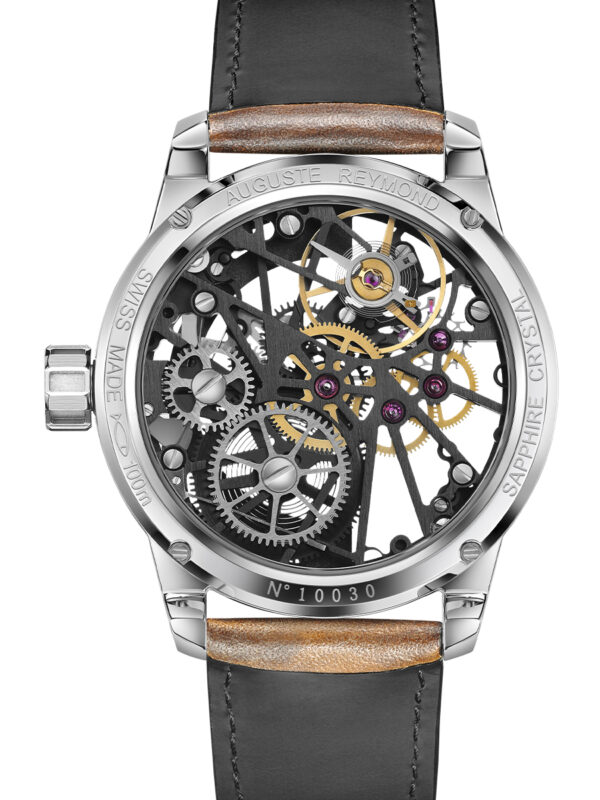 Transparent and fascinating, the ORIGIN SKELETON watch reveals a skeletonised version of its emblematic mechanical manual-winding UNITAS movement. Housed in a 44 mm steel case with an innovative construction, the ORIGIN SKELETON watch has a screw-down bezel.